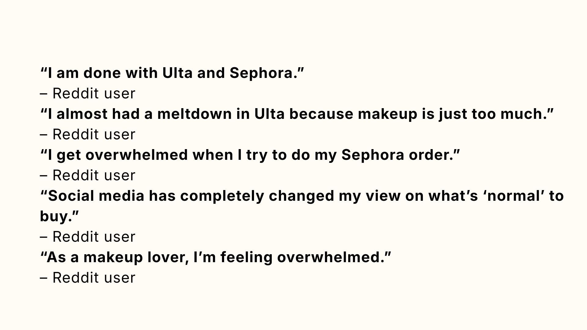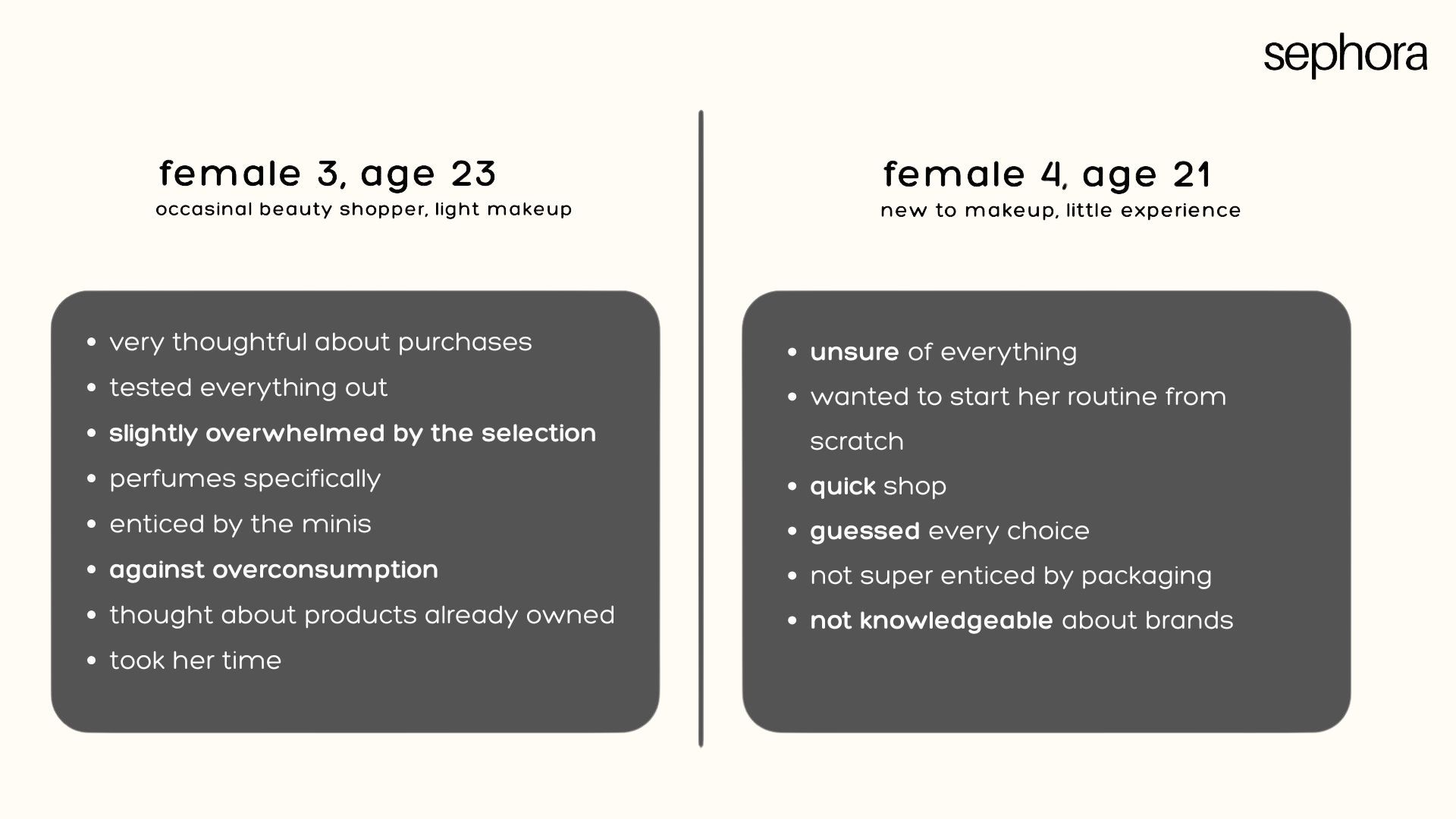 These observations revealed that the challenge wasn’t just the store itself, but the broader decision pressure created by the modern beauty landscape, where endless choices turn what should feel like discovery into mental work.